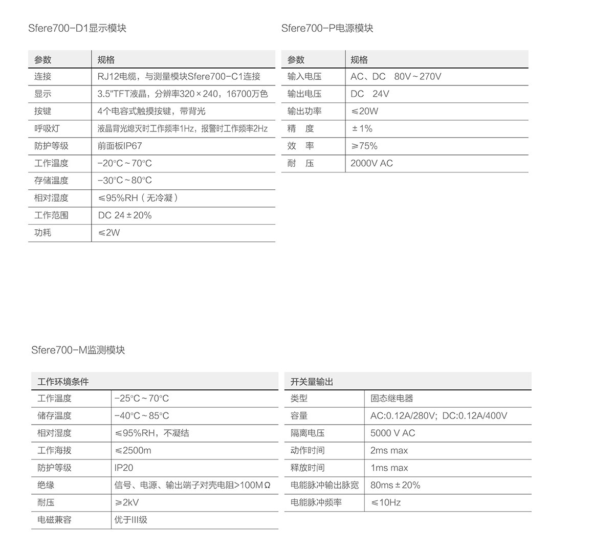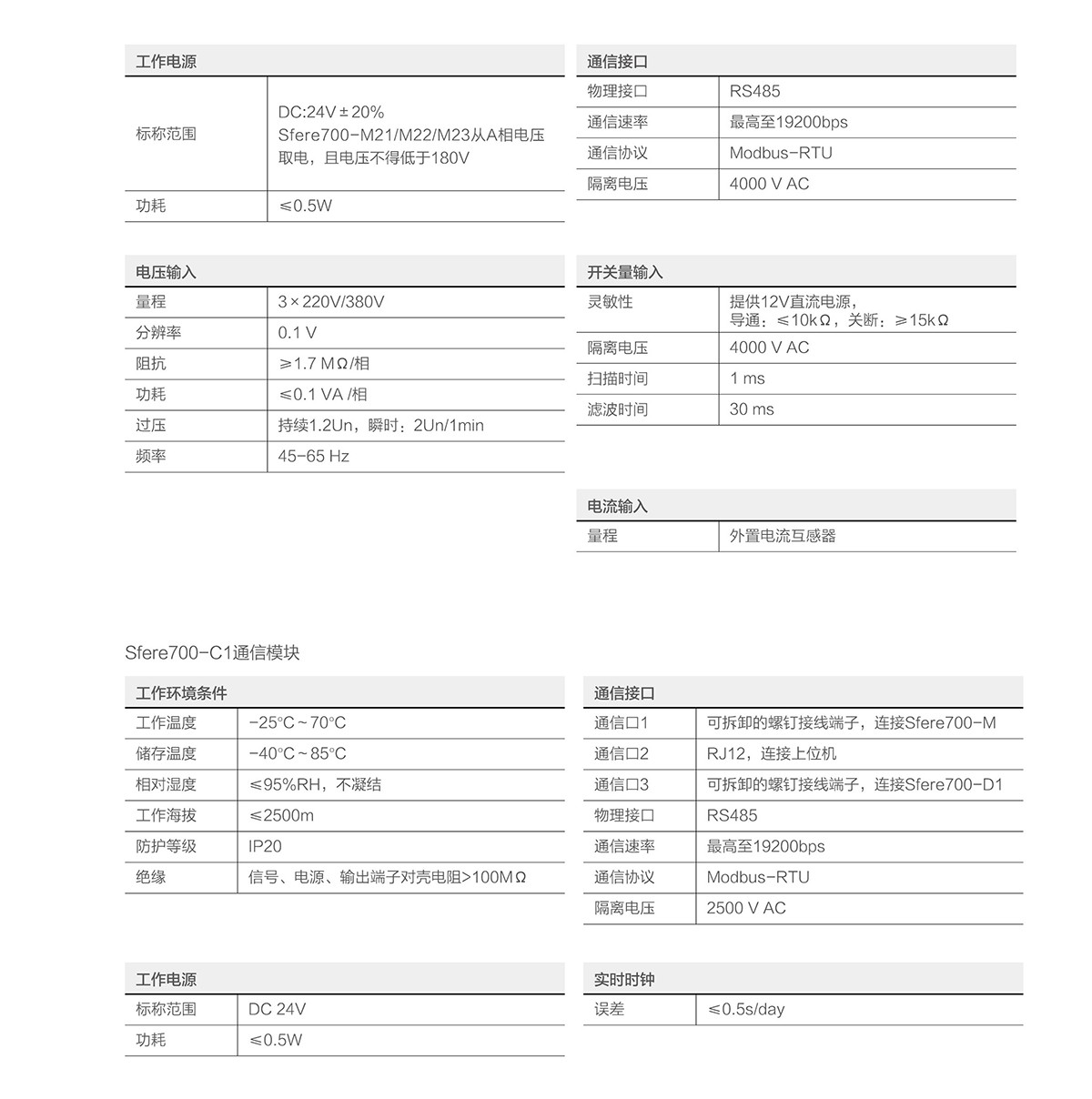 Sfere700監測單元可實現低壓配電系統電力參數的實時測量、電能計量、電能質量分析、狀態監測及越限報警等功能,Sfere700包含1個顯示模塊Sfere700-D1、一個通信模Sfere700-C1、一個電源模塊Sfere700-P、最多支持32個監測模塊Sfere700-M,以及配套的電流互感器等??蓪崿F最多32個三相回路電力參數的測量。配備超大的彩色液晶顯示屏和觸模式按鍵,使用簡易,其體積緊湊,安裝便捷,是多回路電力監測的理想方案。